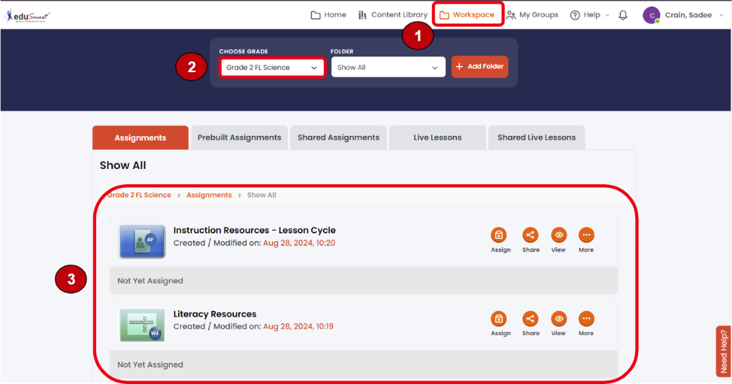 You should now be in the Workspace of the EduSmart platform. This is where all of the curated lessons are saved.